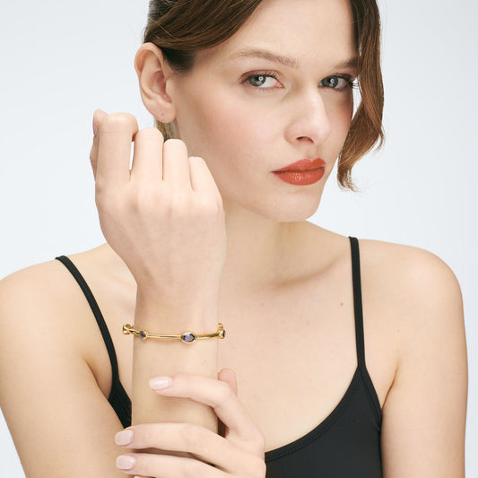 Bracelet Jonc Femme Pierres Fines Améthyste/Iolite/Topaze Bleue - Céleste