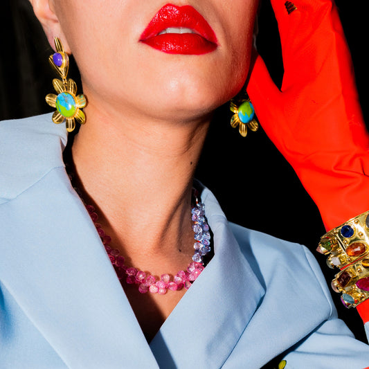 Boucles d'oreilles cristal et pendant amovible Rubis - Leila