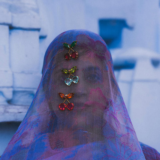 Boucles d'oreilles cerise cristal Vert/Bleu - Mini Cherry