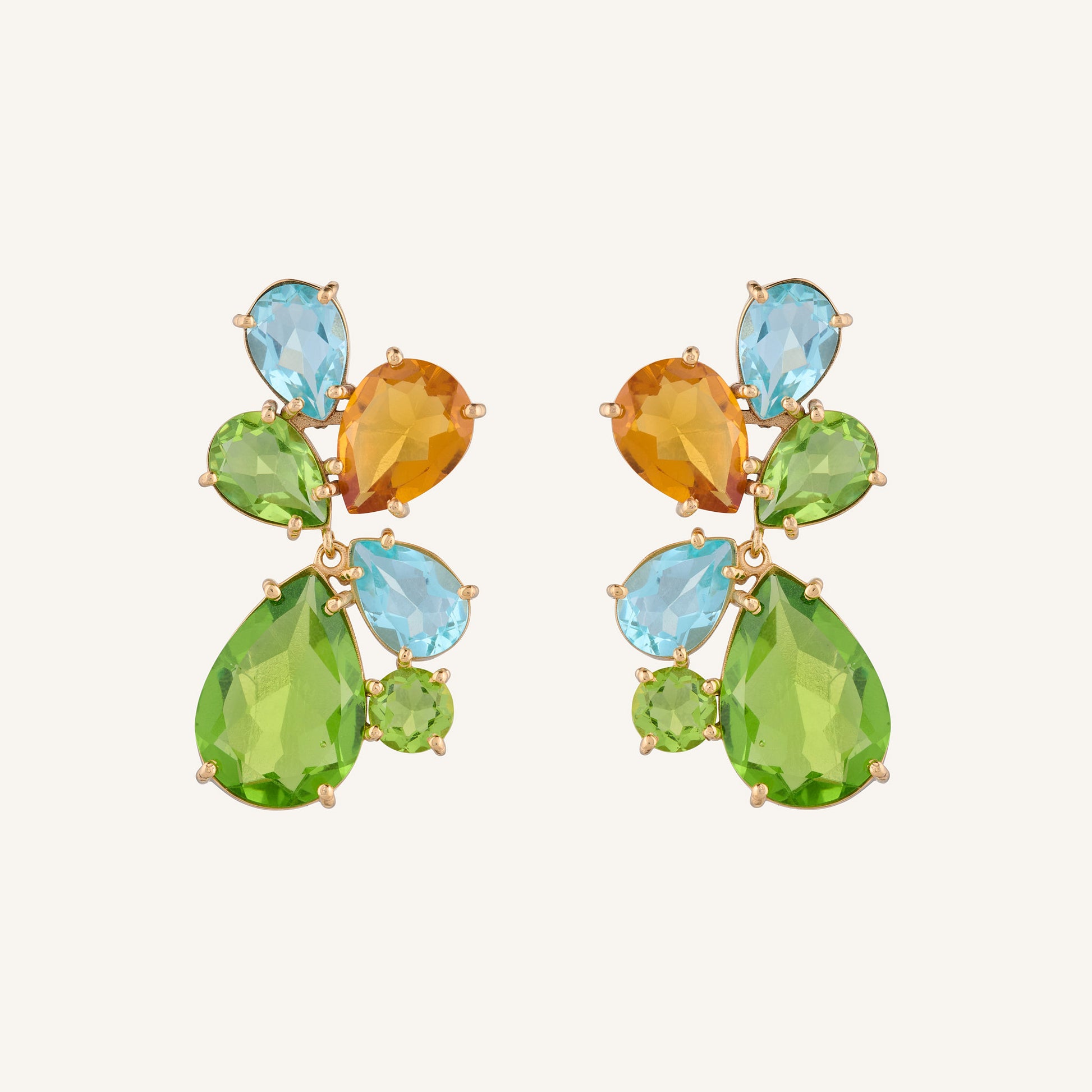 Boucles d'oreilles pendantes cristal Vert/Jaune/Bleu - Duchesse Victoria