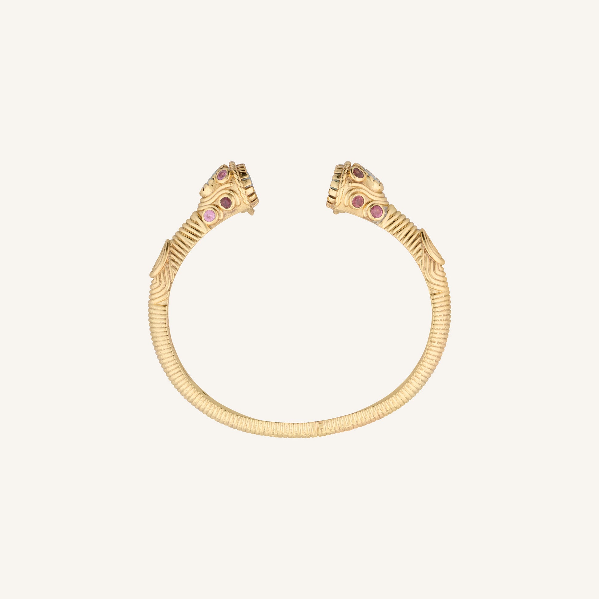Le bracelet jonc indien Dolki en Aigue-marine et Tourmaline rose a une forme ouverte qui lui donne un aspect précieux digne d'un bijou de maharadjah. Le jonc entièrement ciselé est serti de plusieurs petites griffes retenant des aigues-marines de forme ovale et facettées d'environ 7 et 10 mm de circonférence. Le jonc Dolki est orné de 20 pierres de tailles et de formes différentes. Les aigues-marines ont un éclat délicat et les tourmalines roses apportent de la douceur. Le bracelet ouvert et ajustable est richement décoré de griffes et de torsades. Inspiré des bijoux indiens anciens, ce bracelet torque femme est une création unique qui se mariera à merveille avec la bague Asté aigue-marine. L'ouverture permet d'ajuster le jonc à votre poignet. Il convient aux poignets forts et se referme par entrecroisement pour les poignets les plus fins.