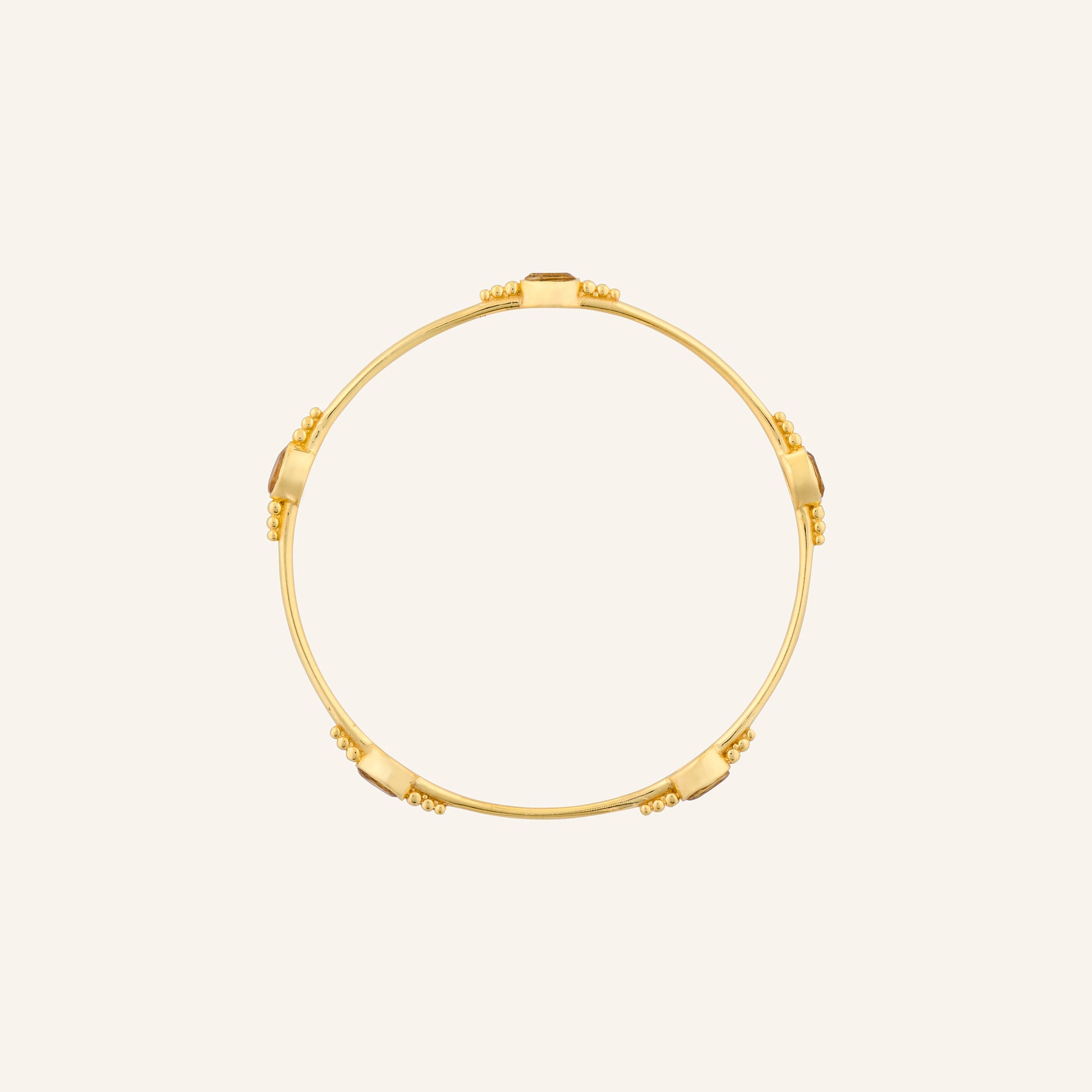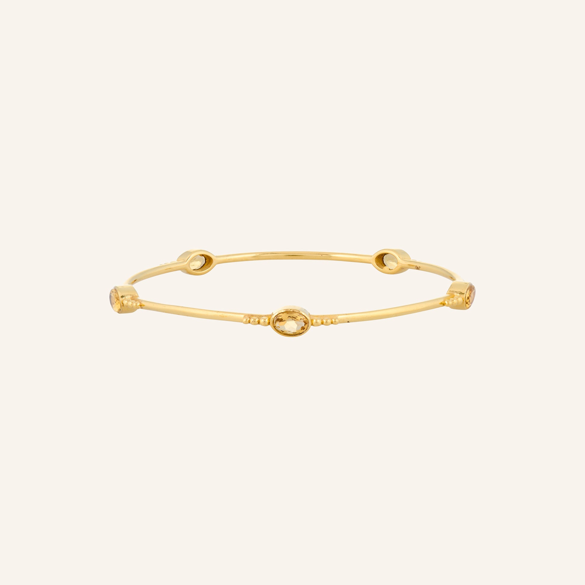 Le bracelet jonc pierre naturelle en Citrine doré est un jonc fin et élégant autrement appelé bangle. Fabriqué à la main, ce jonc pour femme en laiton doré à l'or fin est orné de 5 pierres naturelles, des citrines. Les pierres ovales et facettées sont serties et entourées de billes de laiton doré pour une touche de modernité. La citrine est une pierre fine lumineuse avec des reflets dorés. Ce bracelet jonc Gina est disponible en plusieurs tailles, afin de s'adapter à tous les poignets. Ce bracelet jonc femme tendance est également disponible dans une variété de couleurs et de pierres telles que le péridot avec qui il se mariera parfaitement.
