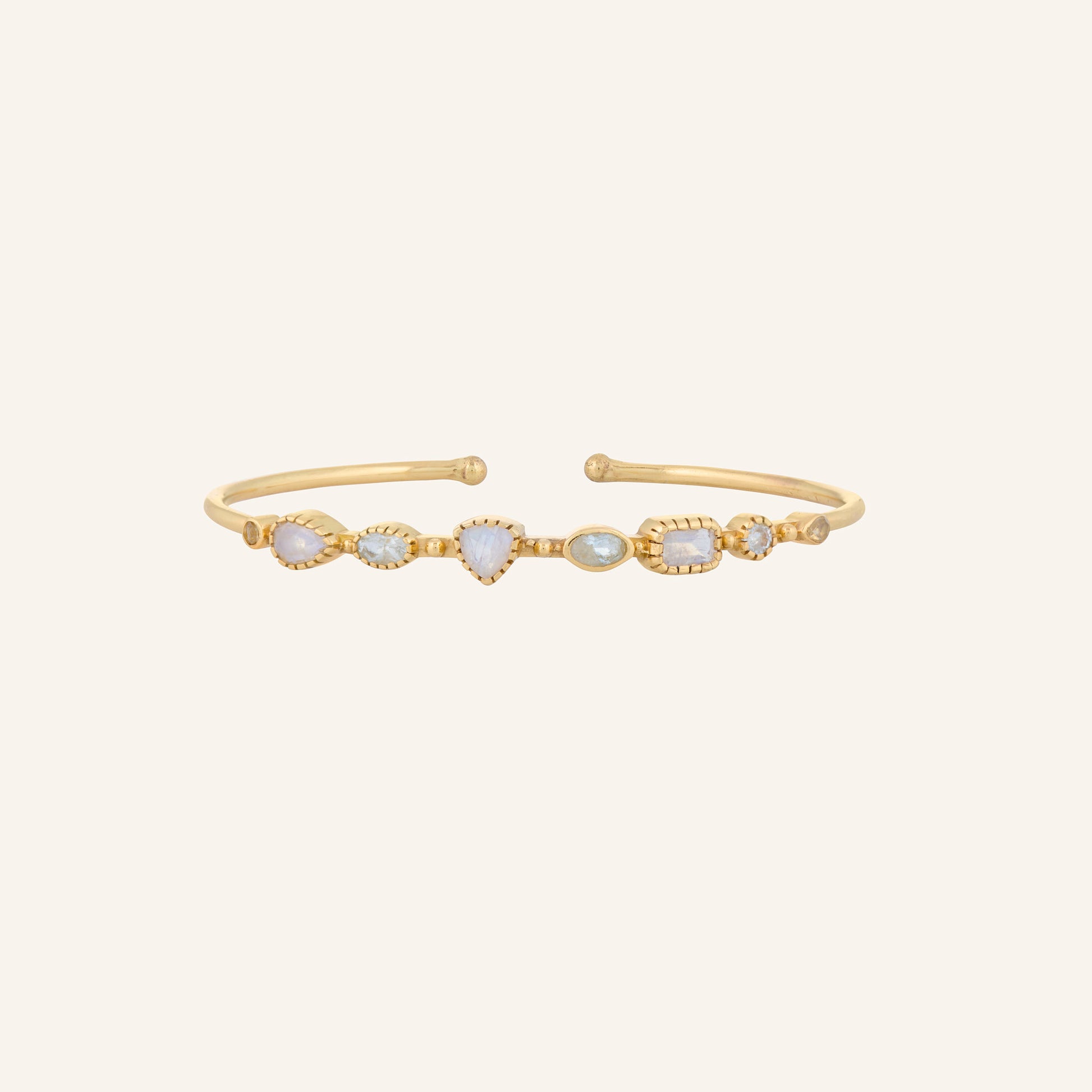 Bracelet Jonc Femme Pierres Fines Aigue-marine/Pierre de lune - Céleste