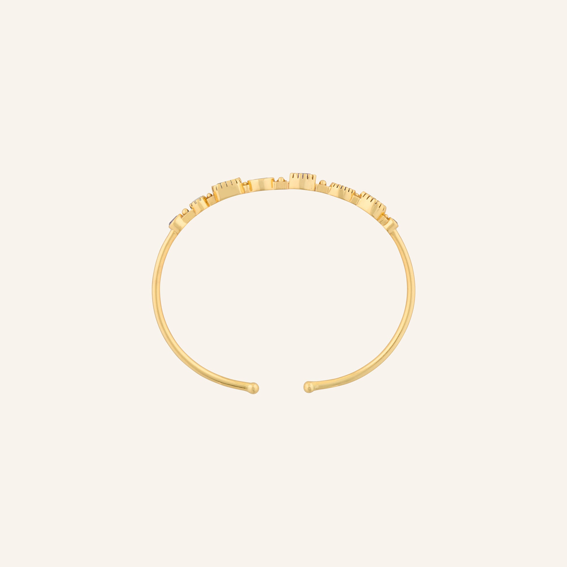 Découvrez notre bracelet Jonc Femme Pierres Fines Améthyste, Iolite, Topaze Bleue en laiton doré à l'or fin, un bijou tendance qui fusionne élégance bohème et éclat naturel des pierres fines. Le bracelet jonc pierres fines multicolores est un jonc fin rigide et ouvert autrement appelé bangle. Fabriqué à la main, ce jonc pour femme en laiton doré à l'or fin est serti de 8 pierres naturelles multicolores. Ce jonc ajustable orné de pierres multicolores – incluant des nuances de bleu foncé (iolite), de bleu pâle (topaze bleu) et de violet (améthyste) – est idéal pour sublimer vos tenues quotidiennes ou pour des occasions spéciales. Les pierres facettées de différentes tailles variant de 3 à 5 mm et de différentes formes sont serties griffe ou serties clos apportant une touche délicate et précieuse au bracelet. Taillées en facette, la transparence des pierres et le mélange des couleurs offrent un éclat sublime. Ce bracelet jonc Céleste est ouvert et ajustable afin de s'adapter à tous les poignets.
